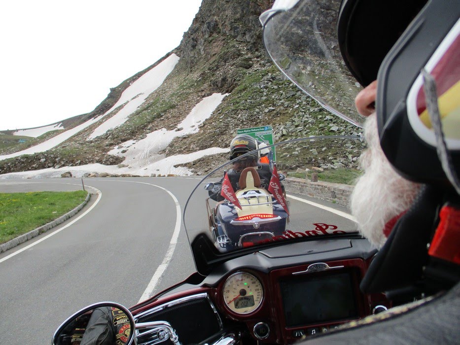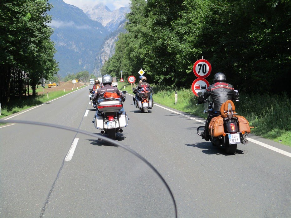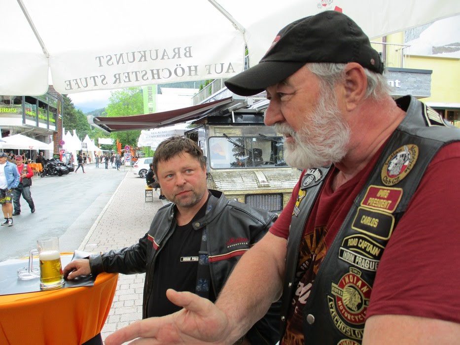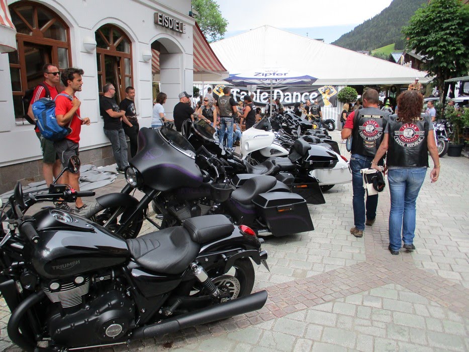 Věřte - nevěřte, ale tenhle výlet se nám zase náramně povedl. Ve středu odpoledne jsme se všichni sjeli do „Penzionu u Ledererů „ v Saalbachu. Když jsme se konečně dohodli, kdo nejvíc po cestě zmoknul, zasedli jsme ke slavnostní hostině, tj. každý se vytasil s tím, co mu zbylo z cesty, přidalo se skoro studené pixličkové plzeňské z místní Billy a projuchali jsme se až ke spaní. První den vyrážíme pod velením Petrunky. Zná to tady jak své boty, takže mimo klasické Kaiser See jsme s ním navštívili a částečně vyplenili také místní palírnu a odvezli si nejednu lahvinku Grassl Gebirgs Enzian Schnapsu. A aby těch suvenýrů nebylo málo, kafíčko jsme si dali v restauraci vedle přírodní výrobny mramorových koulí. Muhlenkugeln – to je slovo, co ? Po pár enciánech se to vyslovuje móóóc dobře. Bavíme se tím pak celý večer. Na cestě zpátky se stavujeme na srazu, protože kvůli tomu tady jsme. Dáváme sice studený, ale ostudně drahý a vlastně taky nedobrý pivo, pokoukáme po stánkách, chvíli sledujem cvrkot a pak šupem do penzionu, páč se fakt děsně mračí. Naštěstí nic nespadlo a večer dokončujeme stylově na zahrádce penzionu s burákama a Enziánem. Další ráno se rozdělujem na dvě skupiny. Ti, co pohrdli nádherným výjezdem na Grossglockner s tím, že už je moc profláknutý, jedou na Krymmelský vodopád, ten prý je profláknutý míň!?! My hrdinové – já, Carlos, Sára a Petrunka jsme odhodlaný učinit další z výstupů severní stěnou na vyhlídku pod Grossglocknerem, ať to stojí, co to stojí ! Vyjíždíme teda za minimálního provozu až na špičičku vyhlídky proti tomu 3798 metrů vysokému horskému štítu, co dal téhle cestě neoficiální název. Přiznám se, že závěrečná šnekovitá uzoučká cestička, vyskládaná mokrýma kočičíma hlavama mi vůbec nedělala dobře. Nahoře jsme hned dostali vynadáno od silničářů, kteří tady malovali čáry na parkovišti, ale vyhlídka byla špičková a vítr fičel tak akorát, aby nás neodfouklo. Odtud se pouštíme přes hřeben na jižní stranu masívu. Jsou tady ještě zbytky sněhu, na několika místech tak do dvou metrů návěje kolem silnice. Jinak jaro, hořce a ostatní kytky kvetou jak o život. Na Kaiser Franz Josef Hohe konstatujem, že ten ledovec je fakt rok od roku menší a jdeme na dlabanec. Za oknem panorama ledovce, poletující orli, bašta. Z místního menu se nám osvědčila polívčička s tyrolským maxi knedlíčkem, pivo a pro mě jeden enziánek na zahřátí, páč je venku sice hezky, ale kosa. Sára s Petrunkou zvolili nevšední kombinaci gulášovky a šampíčka. Nakonec, proti gustu…No a jak se říká, že na horách člověk nikdy neví, tak na tom něco bude. Než jsme sešli ze schodů, začíná sněžit a najednou je z toho liják, ale jakej ! Indiána bys do té sloty nevyhnal! Takhle rychle jsme oblíknutý do nepromoků ještě nikdy nebyli. Rušíme další program a vracíme se zpátky. Jak jsem ale předpokládala, když jsme přejeli horský hřeben, bylo po dešti.V klídku teda sjíždíme zpátky dolů a jedem na Biker Manii. V centrálním stanu si dáváme hambáče, pivo Zipfer, který je s opatrností pitelný a chvíli pobudem. Pak se stěhujeme do klidnější předzahrádky nějakého hotelu a završíme ten náš výlet kafíčkem a pohárem. Po cestě zpátky na penzion ještě dovykoupíme zbytek pixličkové Plzně a večer už jenom dojíždíme na zahrádce zbytky zásob a pití. Na cestě zpátky se odpojujeme už u Salzburgu, ale mám zprávu, že všichni dojeli domů v pořádku. Jen my jsme se na Šumavě brodili kroupami. Naštěstí spadly dřív, než jsme přijeli, takže vlastně dobrý. HOWGH ! Pro IMRG Indian Prague Joly