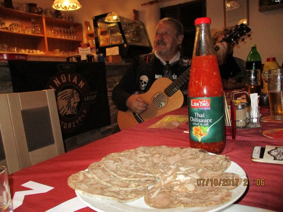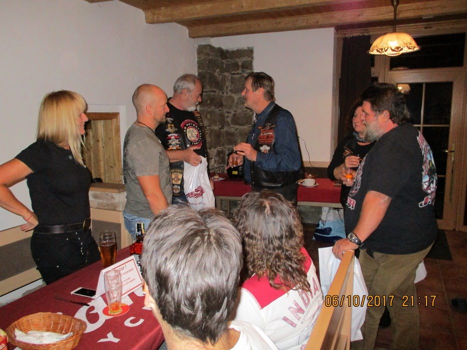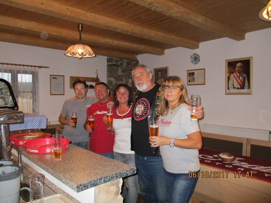 Letošní podzim jízdě na motocyklu fakt nesvědčí, my ale, posilněni čerstvou pizzou, vyrážíme směr jih. Dohady, jestli bude pršet, nebo ne, rozhoduje sv.Petr, a to tak, že nerozhodně. Leje jen z Prahy na Mníšek. Po příjezdu do penzionu sice Petr, Jana a Jarda tvrdí, že jim vůbec není zima, horký boží hovězí vývar a guláš jim ale stejně dělá dobře. S postupem večera nás přijíždějí posílit Vierka, Vraťo a Pal‘o, kamarádi ze Slovenska a Petra s Michalem ze „z Plzně“ ! Spát se jde hooodně pozdě a vstávat se nikomu nechce. Po snídani padá rozhodnutí, že necháme záchranný mikrobus, určený pro suchý převoz members na sobotní výlet zaparkovaný a všichni kdo můžou jedou na motocyklu. Venku 4°C, prší neprší, ale už klasik říkal, že “Zmrzlý motorkář je jen špatně oblečený motorkář“ a my jsme co? My jsme oblečeni dobře, tak jedem. Muzeum loutek s kafem a kremrolema od Rendlů ze Sušice - Hrad Velhartice - řezbářství Titl tamtéž - oběd v Chatě Rovina u Hartmanic/kotleta z mangalice s omáčkou z lišek a šťouchanými bramborami/ - skvostné pivko v pivovaru Zlatý Srnec na Mechově. Tak to je všechno, co na našem sobotním výletě stíháme. Fakt docela zmrzlí pak přijíždíme na Filipku. Jarda se sice vrací domů, naše řady ale posilují Bobo s Jesikou, Pospa a Eva, což je dobře, protože nám alespoň pomáhají sníst všechno, co máme v penzionu přichystané: sametově krémovou prdelačku - jelítka a jitrničky do zlatova opečené - pečená kolena tajným kořením provoněná - uzené a klobásky z udírny právě vytažené - tlačenku tence krájenou. Za doprovodu Bobovy funglnágl nové indiánské kytary se potom tak nějak prozpíváme a doslova prožerem až k půlnoci, kdy nám potvora rozum velí jít spát. A má pravdu, předseda! Ráno je jako vystřižený z Krále Šumavy a Petra s Janou čeká nepříjemná a klouzavá cesta do Prahy. Pro IMRG Indian Prague Joly